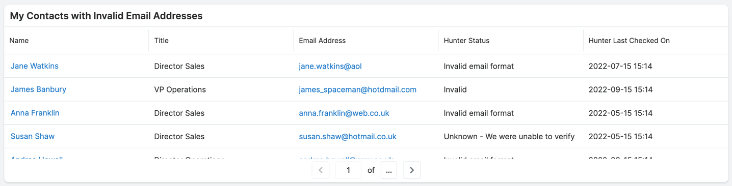 This one is great for getting an overall picture of when your contacts were last verified, and what the status is. This could help you understand how many contacts should be re-verified.